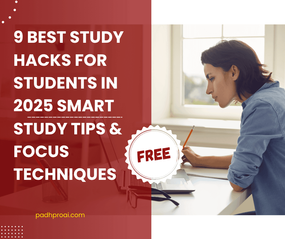 9 Best Study Hacks, 2025 में पढ़ाई का मतलब सिर्फ किताबें खोलना नहीं रहा — अब यह है AI-टूल्स, ऑनलाइन डिस्ट्रैक्शन, बदलते सिलेबस, और तेज़ गति से सीखने-समझने का मिश्रण। जिसने पुराने समय में सिर्फ रटाई (rote learning) पर भरोसा किया, वो आज पीछे रह गया है।